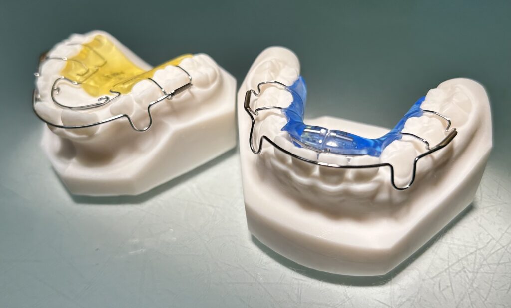 お子さまの矯正治療に使用する床矯正装置。顎の幅を広げる効果があり、5~6歳で始めることで、永久歯が生え揃うスペースの確保に繋がります
